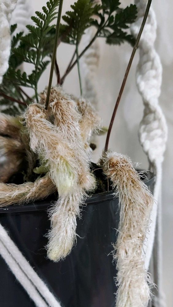 ミズゴケでクルクル巻いて、針金がけで、室内に吊してます😊