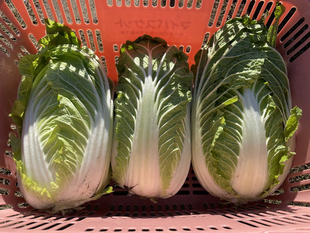白菜収穫しました!最初に発芽したのはシンクイムシに全て食べられて🐛9月に蒔き直しして昨日収穫しました😃