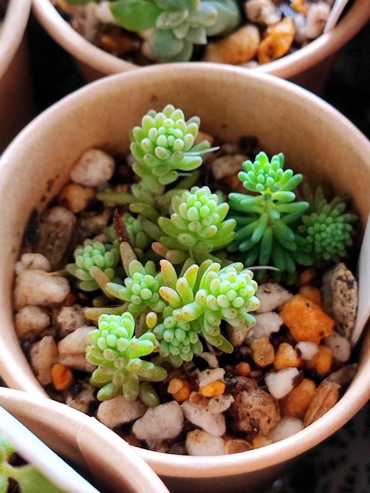 今年はお正月に暇すぎて、自分へのお年玉と称し、エケベリアとかをチマチマ購入。調子に乗りすぎてどっさり届いてチマチマ植えて…っていう三が日を過ごしていたのですが、オマケでセダムやらなんやらも大量&被りなしでたくさんの品種を頂きまして…(大喜びで全員ミニポットに植えこみました)