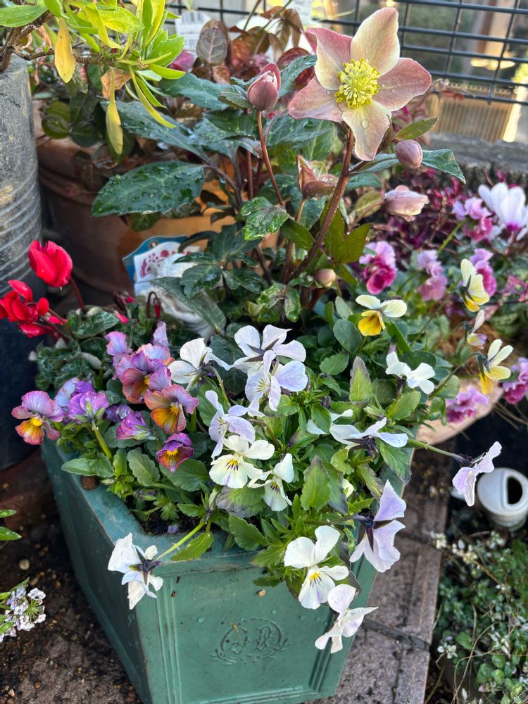 とっても好き❤️な色のクリスマスローズを見つけて、新しい鉢に寄せました。