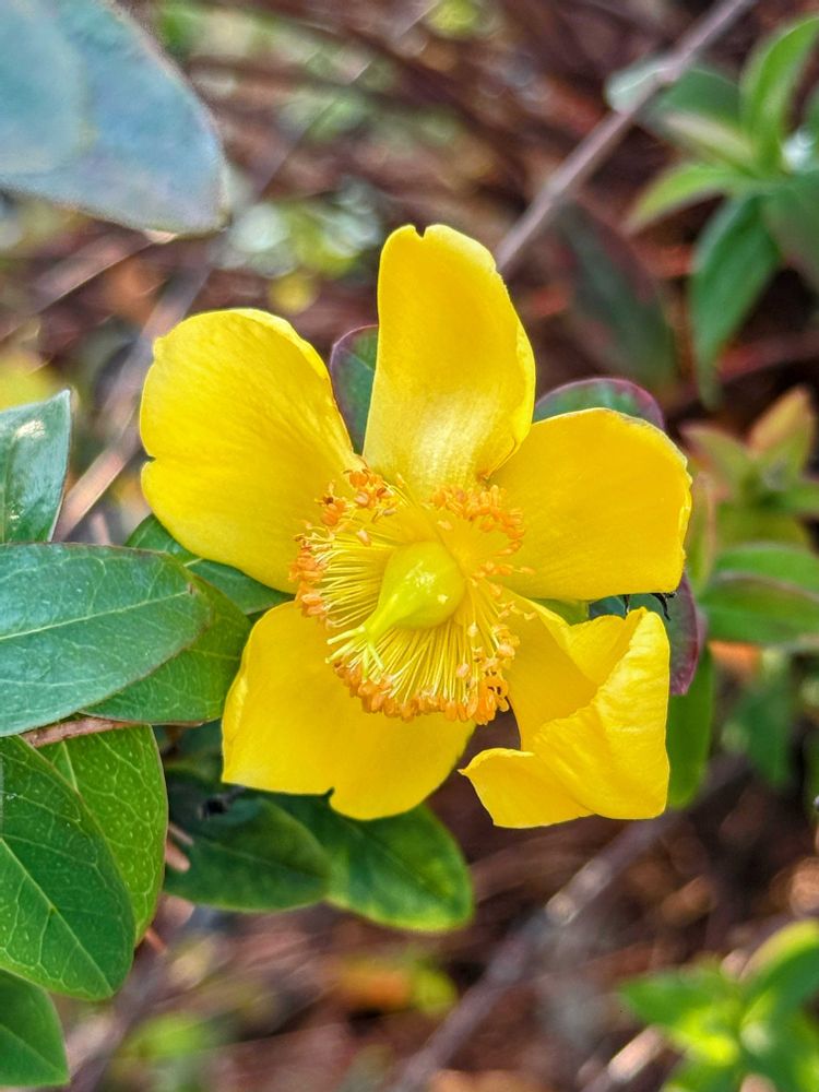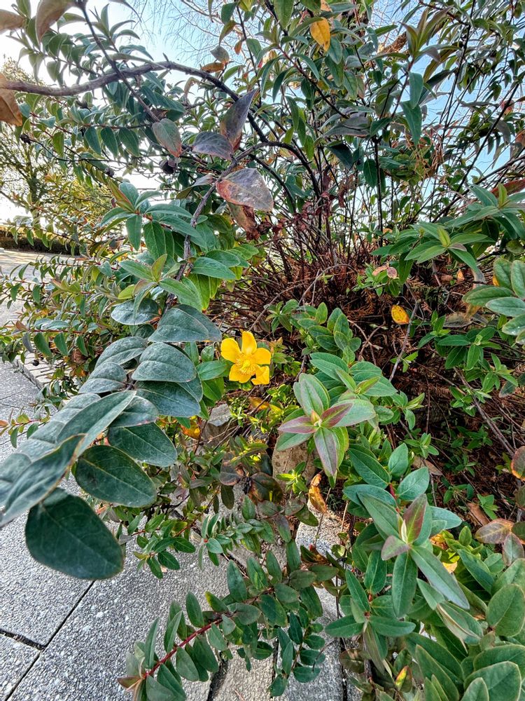 外の庭園を歩いていたら キンシバイの花が一輪✨