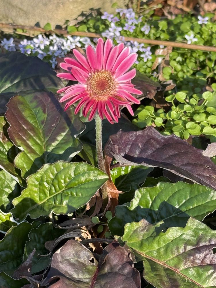 イオノプシジウムの近くでは小さなガーベラも一輪咲いていました😄