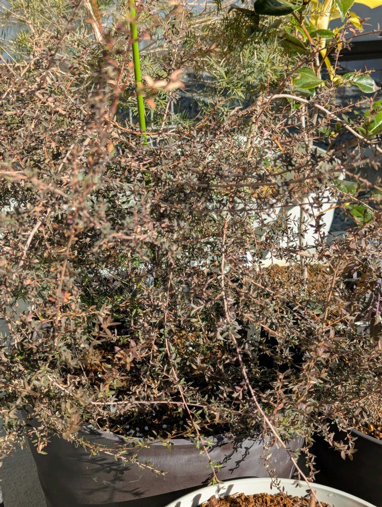 ギョリュウバイ。寒さで少し枯れ込んできました。管理が難しい。
