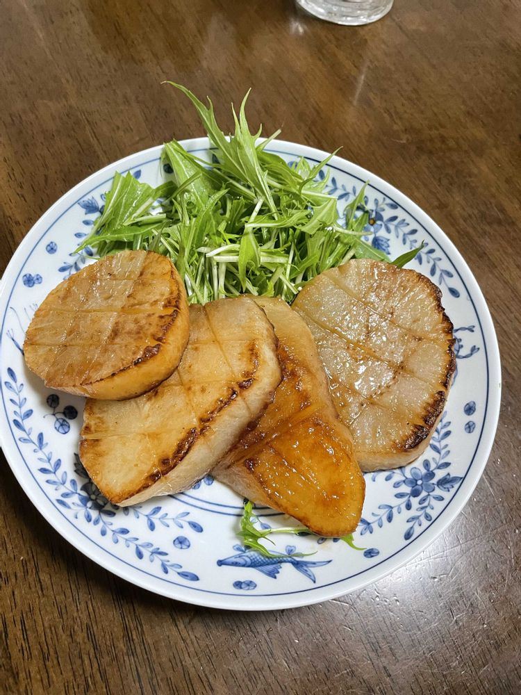 昨夜は収穫したおでん大根をステーキに👌