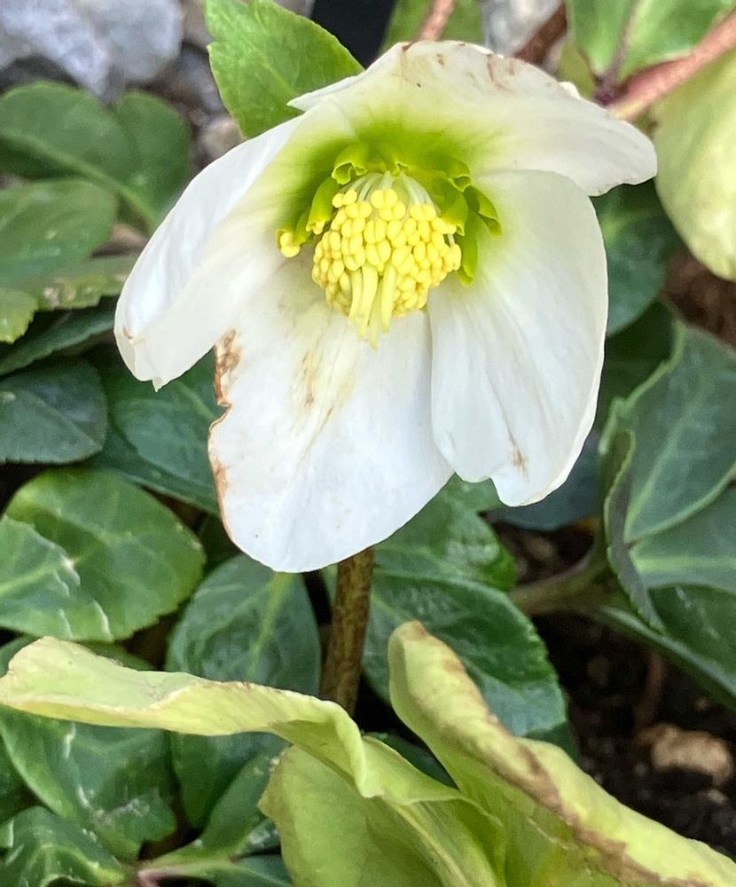 落雪で傷ついたクリスマスローズ