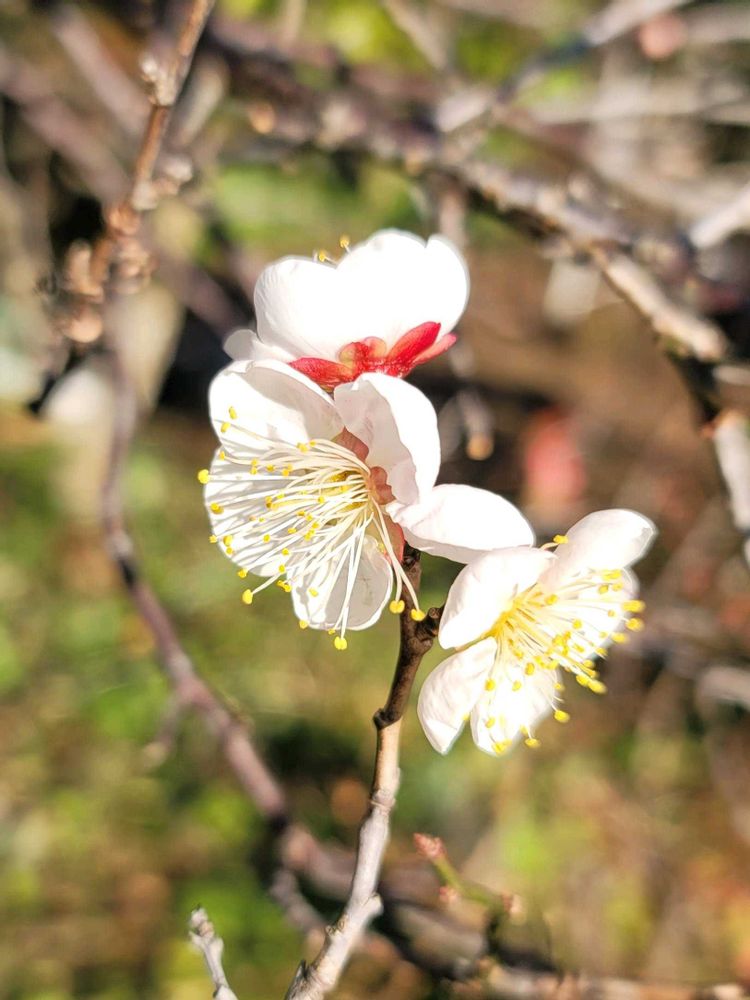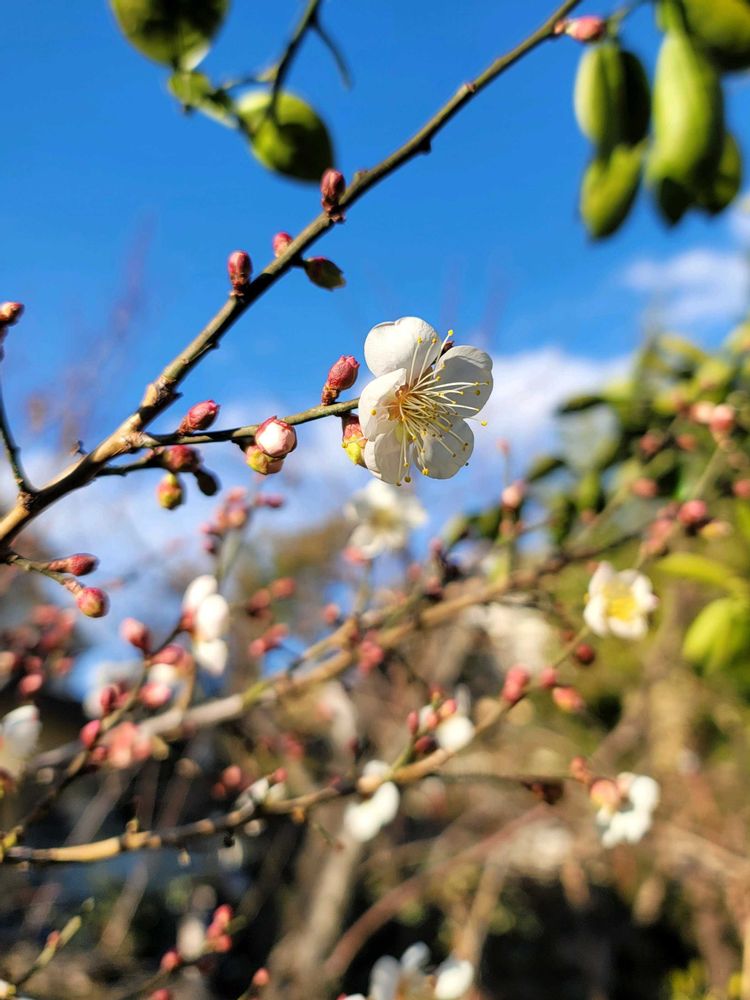 うらの畑で早咲きの『梅の花』が咲いています🤍🩷🌿