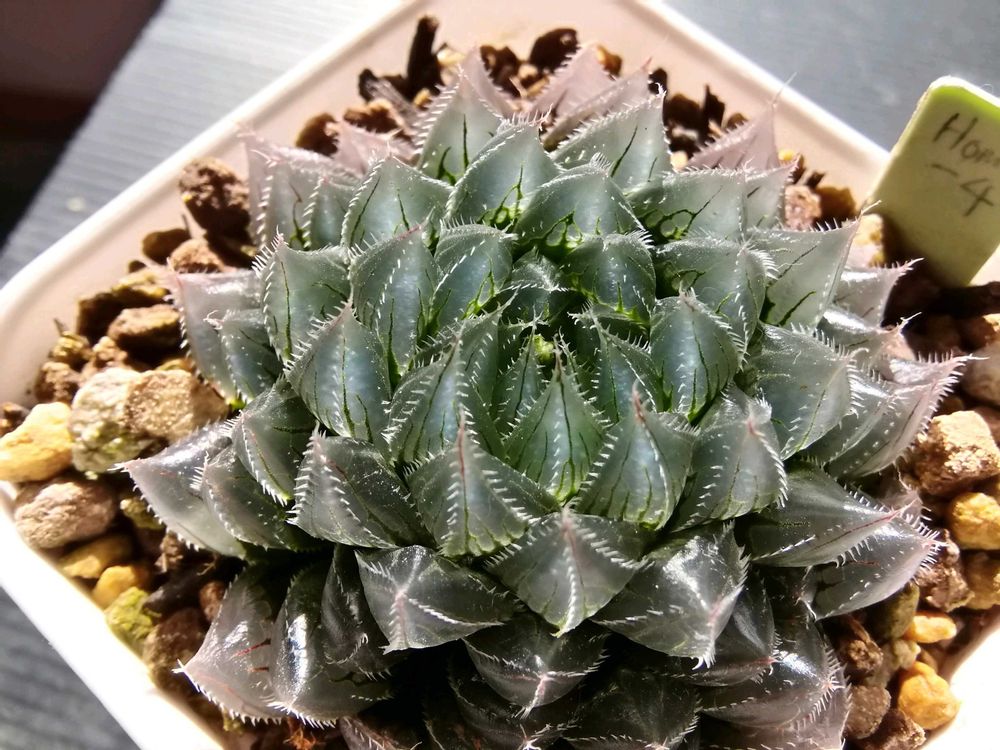 コーデックス師匠と仰ぐGS 友さんへパキプス君をお届けがてら、1年ぶりの二和園へ🚗💨 師匠のお友達と4人でハウスの中を行ったり来たり⇄ 植欲増進中の私は購入🈲️ルールなんて無視💦 ずっと気になっていた子たちをGETしてきました😊 植物名: 瑠璃殿錦 学名 :Hawworthia limifolia f.variegata 英名 :Fairy Washboard 科名 :ユリ科 属名 :ハオルチア属 原産地: 南アフリカケープ州 流通名: 瑠璃殿錦 生育型: 春秋型