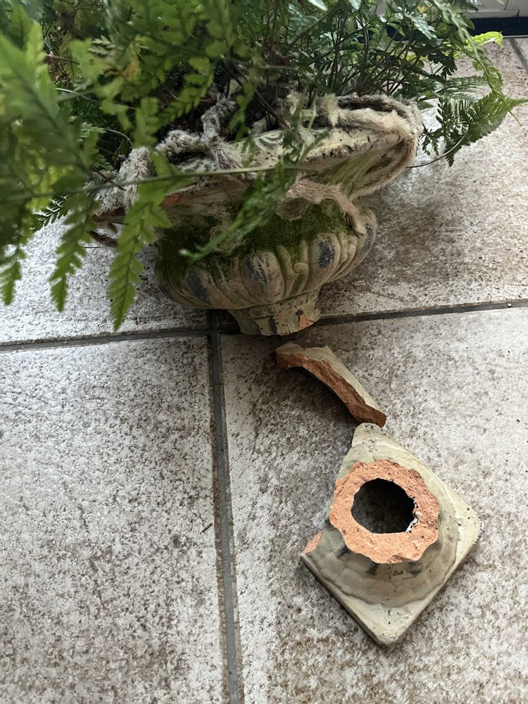 日曜日の強風で数年前に次男にプレゼントで貰った鉢が飛ばされ割れてました😭