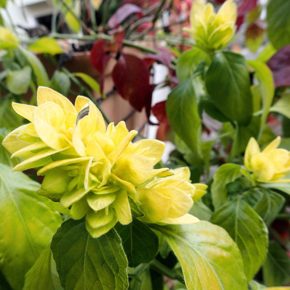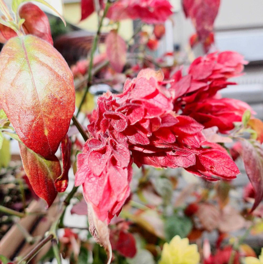 3枚目は夏〜秋を彩ってくれた、ベロペロネ(コエビソウ)エビーナレッドの紅葉と、赤味を増した苞葉です🦐4枚目は同じくベロペロネのエビーナイエローで、こちらは葉も苞葉も変化無しです。そろそろカットして霜のかからない安全な場所に移動しようと思っています。熱帯の植物なのに結構耐寒性あるのだなと感心しています😳