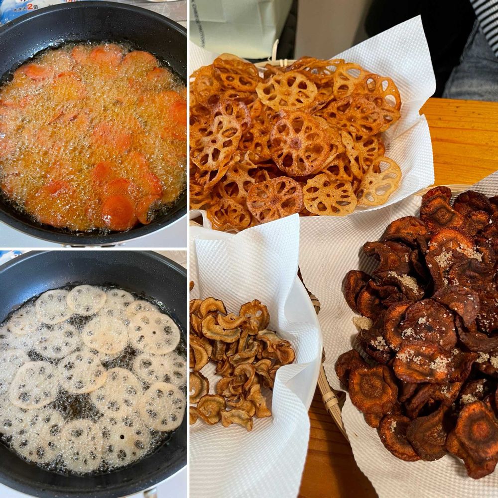 蓮根チップスは大好評で大人も子供も!特に一年坊主の孫には「じぃじ天才‼︎」と褒められました🤣🤣🤣