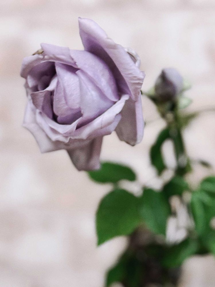 青みを帯びた薄紫色のしっとりとした雰囲気のバラ。