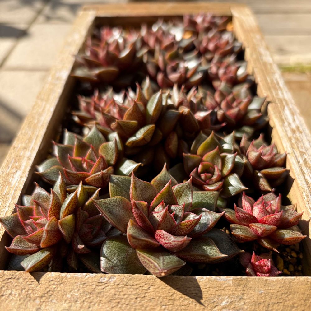 大和錦ミニプランターの葉挿しっ子達、紅い👍。