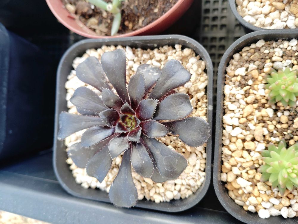 毎朝ベランダに多肉をチェックしに行くんですが、やっぱり真っ黒は目をひきますね😘
