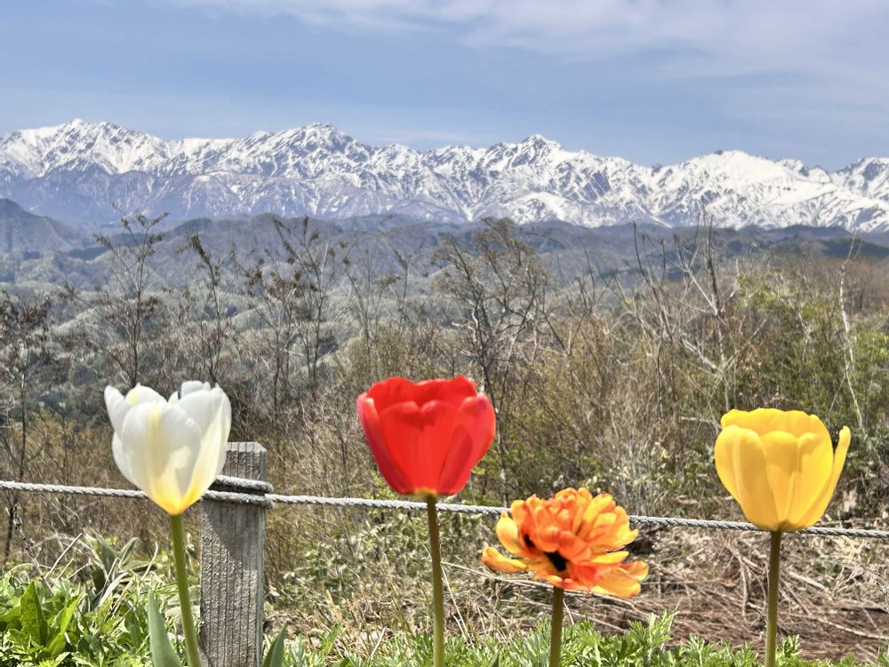 北アルプスが望める、長野県小川村のアルプス展望広場で撮りました😊⛰️🌷