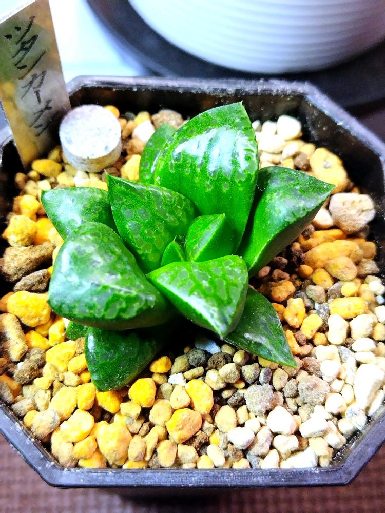 コーデックス師匠と仰ぐGS 友さんへパキプス君をお届けがてら、1年ぶりの二和園へ🚗💨 師匠のお友達と4人でハウスの中を行ったり来たり⇄ 植欲増進中の私は購入🈲️ルールなんて無視💦 ずっと気になっていた子たちをGETしてきました😊 植物名: 瑠璃殿錦 学名 :Hawworthia limifolia f.variegata 英名 :Fairy Washboard 科名 :ユリ科 属名 :ハオルチア属 原産地: 南アフリカケープ州 流通名: 瑠璃殿錦 生育型: 春秋型