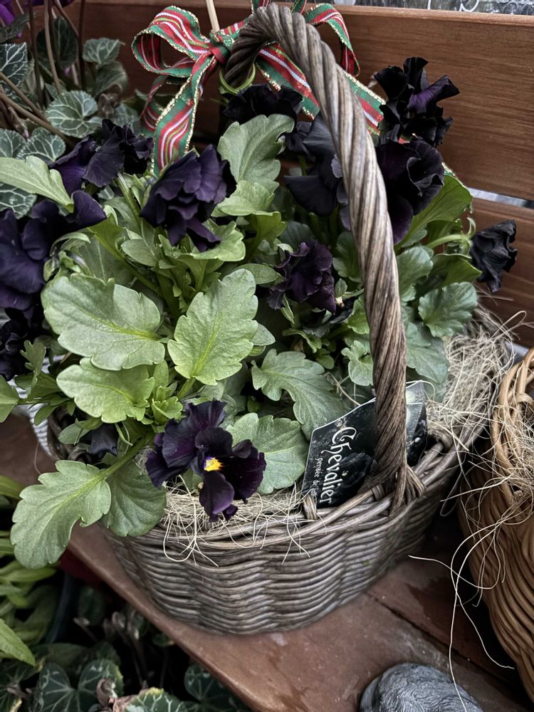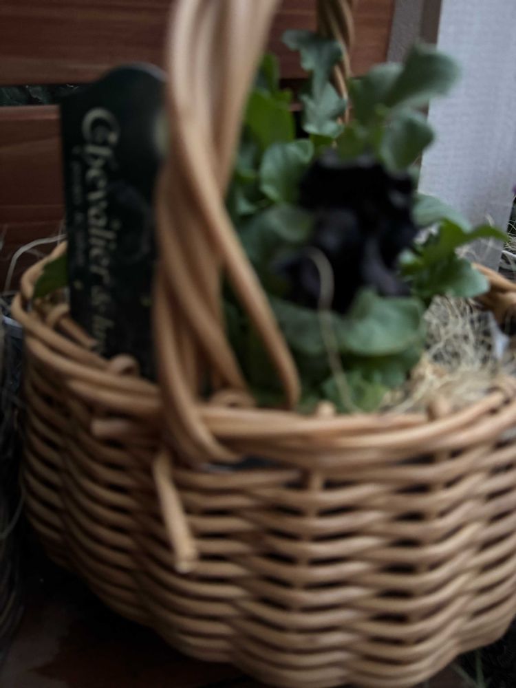 シュバリエドゥリュンヌ、まとめて寄せ植えでカゴに植えたらこんなに素敵になるんですね🖤✨