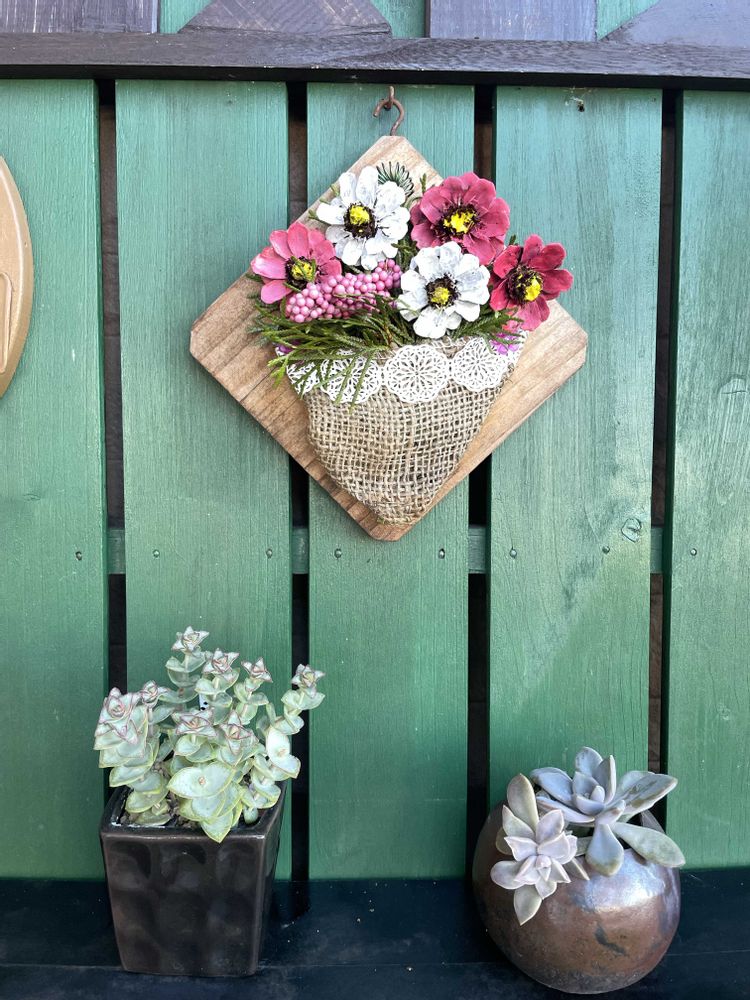 北側が寂しくなったのて昨夜スイッチが入り作ったお花と多肉乗せ取り付け棚です。😅