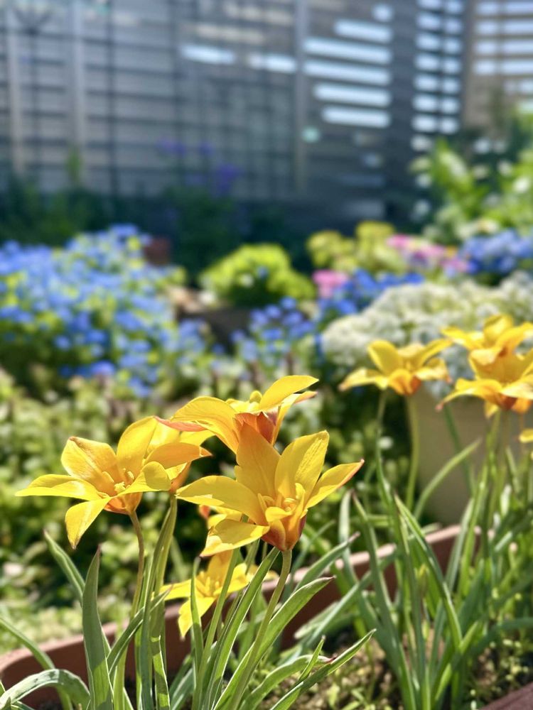 色とりどりの春の庭〜原種チューリップ チンカ黄色と赤の2色咲きが可愛い😄