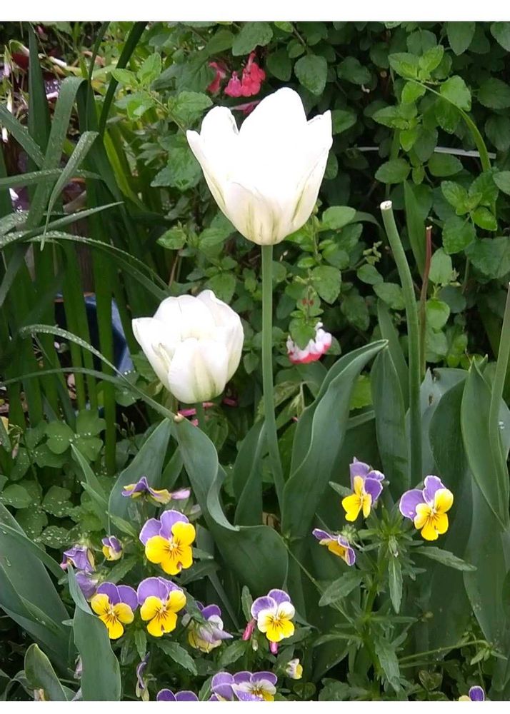 ❶小さな花壇のチューリップとビオラ