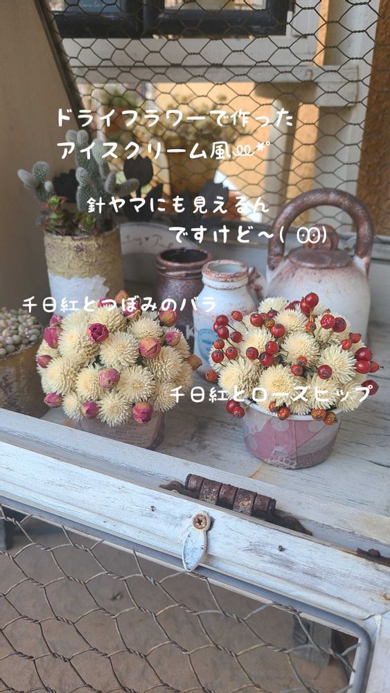 ドライフラワーとアイスのカップを作ったアイスクリーム風ꔛᡣ𐭩˒˒