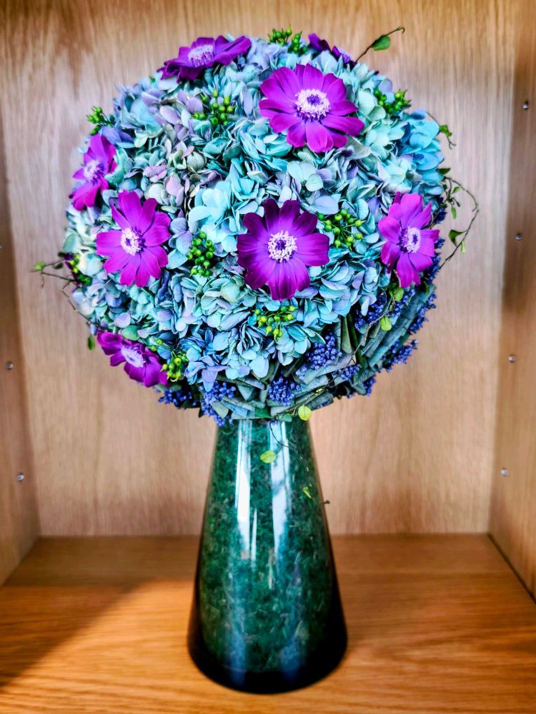 Part.1がダラダラと長くなってしまったので、2025年の作品からは新しくこちらにまとめ、随時更新していきます。 基本的に花材を購入することはなく、お庭で育てたお花や、切り花としてしばらく飾って楽しんでいたお花を再利用する形で作っています。フレッシュからドライになっていく過程を楽しんでいます。 2009年頃からプリザーブドフラワーのレッスンに通い、2014年にプリザーブドフラワーの講師資格はとったので(年会費が高いので既に退会)アレンジの基礎はそこで学びましたが、生花やドライフラワーの扱いは独学です。 その後、生きている植物の魅力に魅せられてしまい、今ではプリザは一切作っていません。 Part.1にも作品を載せていますので、よかったらそちらもごらんください。
