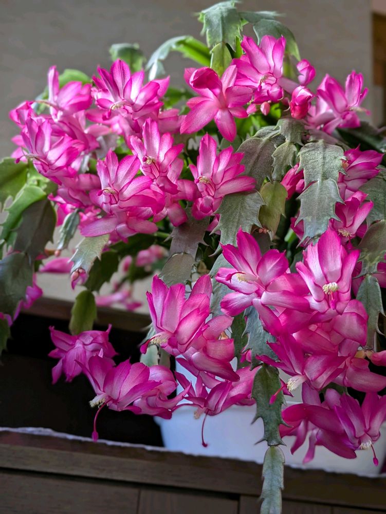 投稿が777に近付いているのが数日前に分かり、丁度、今、我が家で綺麗に咲いているこのデンマークカクタス💗にしよう♫って決めてたんです🤭