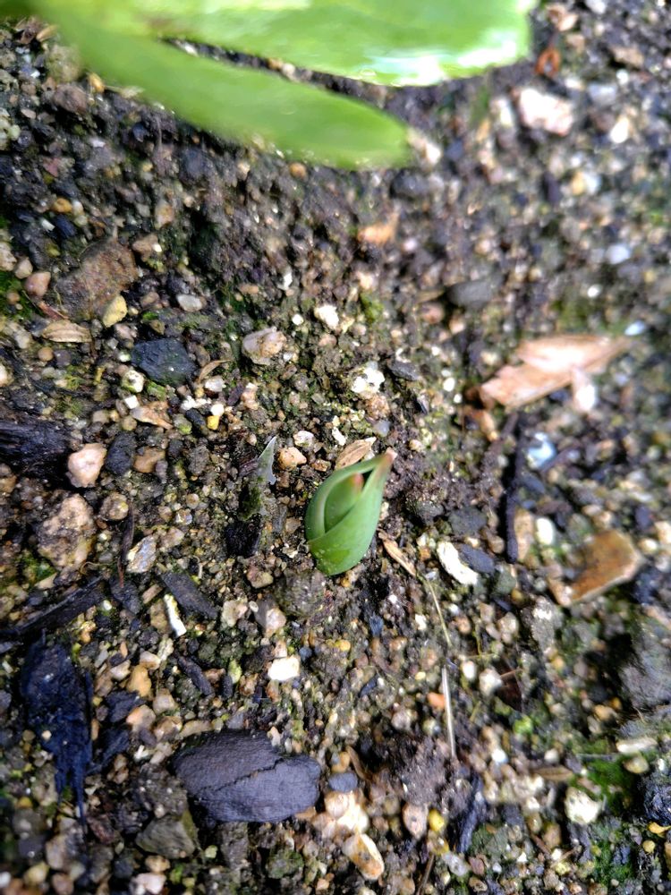 ③我が家の庭のチューリップは今は未だやっと芽が出ただけです🌱