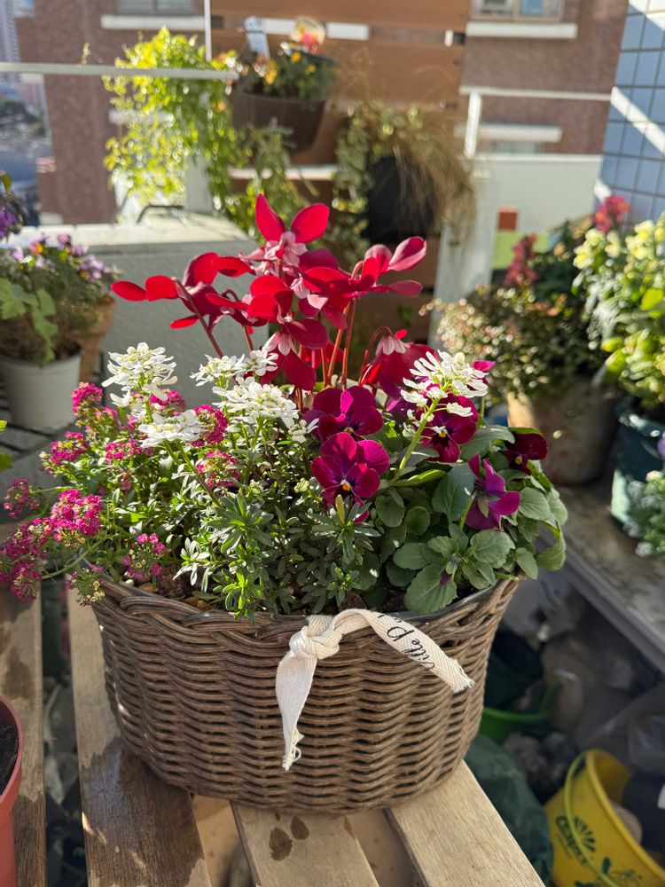 12月11日に一度ご紹介した赤色の寄植えですが、花数が増えて豪華に見えるようになりました。