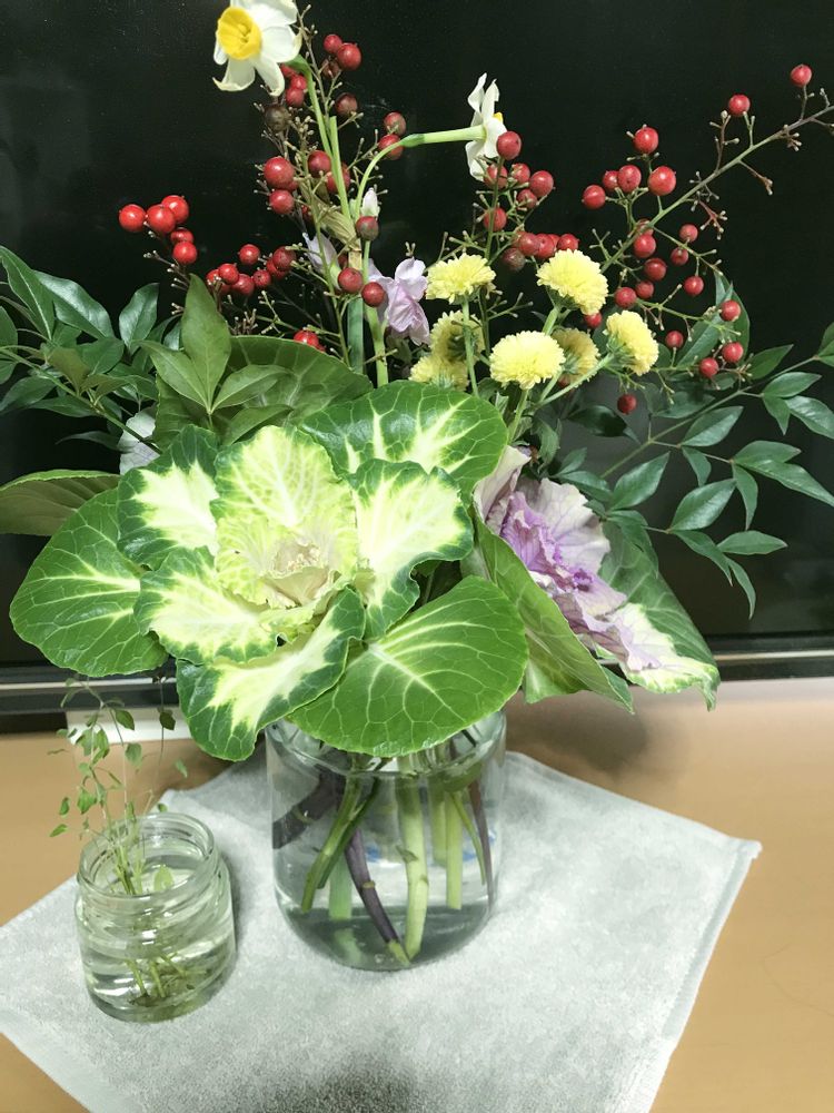 お正月飾り片付けましたが葉牡丹、水切りしましたらまたシャッキリしたので南天は変わらず元気なので思い直してミニチュアにしてみました…