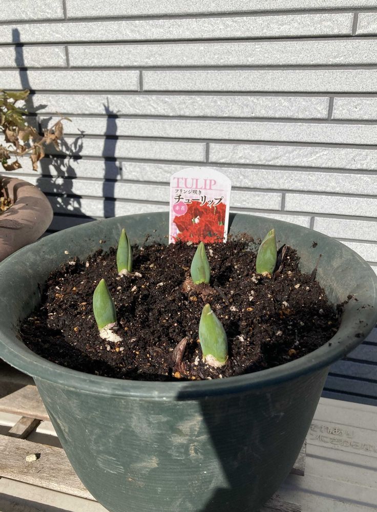 チューリップが無いのは寂しいので、フリンジ咲の真っ赤❤️な芽出し球根を追加購入、2階のベランダに置きました😅