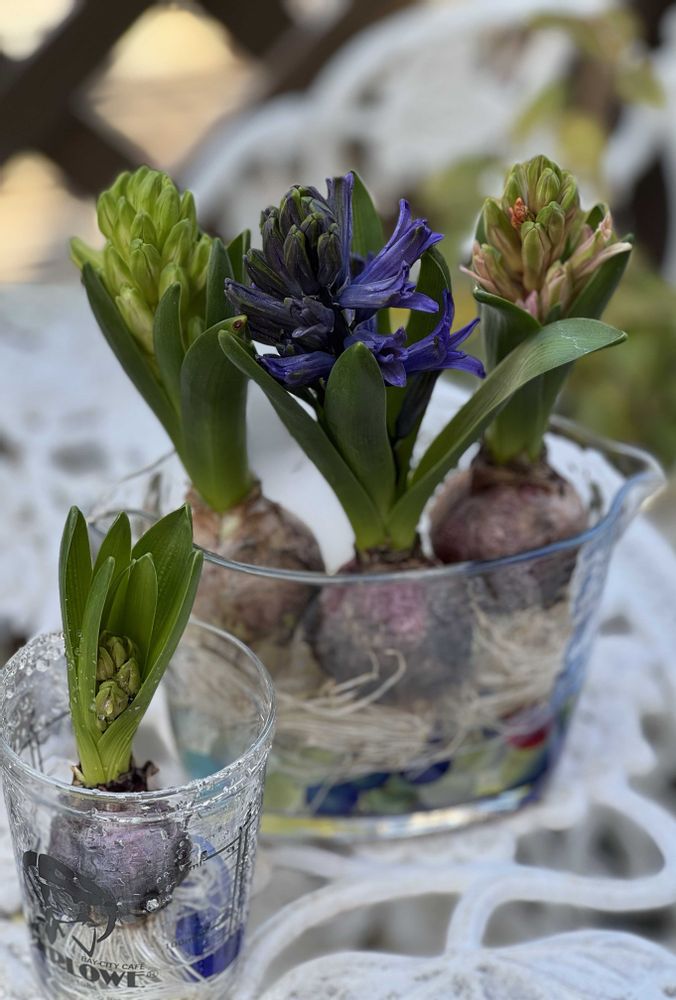 芽出し球根の土を洗い流して始めたので早い、2週間で可愛く咲いてきました💗