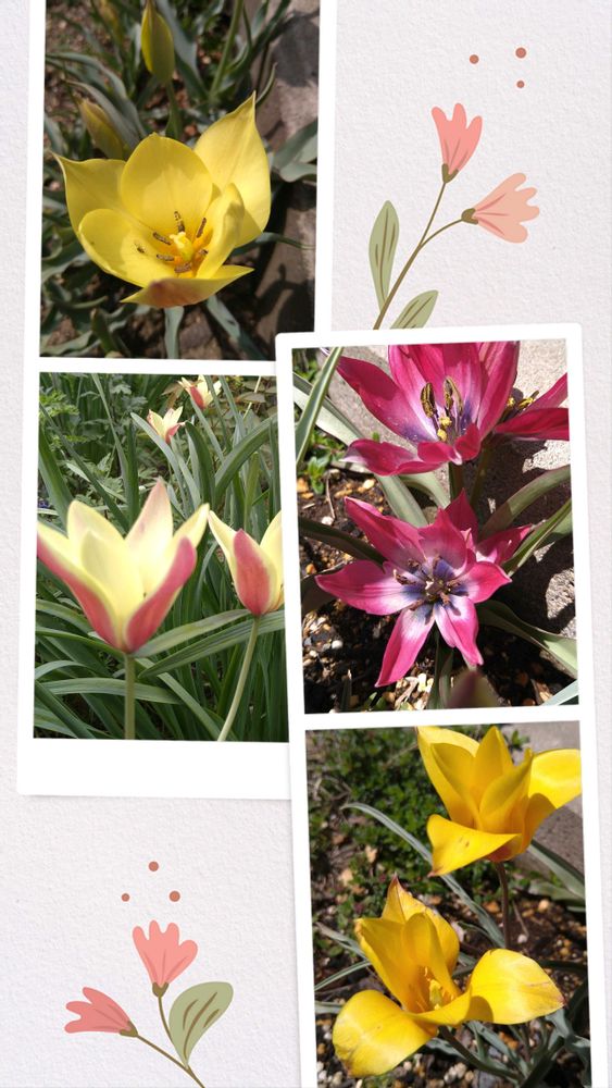 華やかな八重咲きも、愛くるしい原種チューリップもいいですね〜🥰