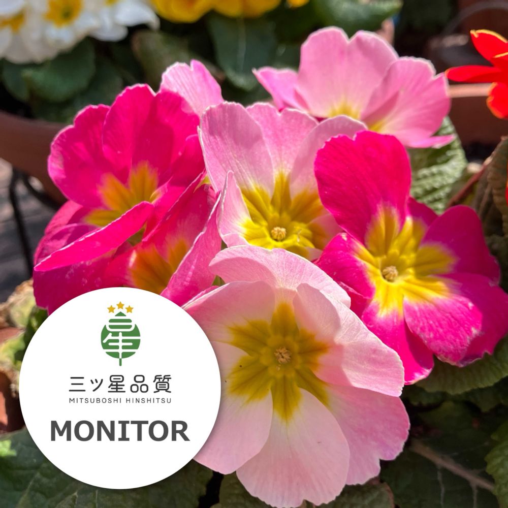【三ツ星品質とは】 「三ツ星品質」は、ランダムに選ばれたモニターの皆さまが実際に苗を育て、その過程で「育てやすさ」や「花付きの良さ」など、さまざまな側面から一定以上の評価を得た苗に認定されるブランドです。 「三ツ星品質モニター」にご参加いただく方には、三ツ星品質に認定される前の苗を実際に育てていただき、その後、モニター期間終了時のアンケートで「生育面」「ビジュアル面」の項目について、星1~5の5段階でご評価いただきます。 そして、一定の基準以上の評価を得た商品は「三ツ星品質」として認定され、店頭に並ぶことになります。