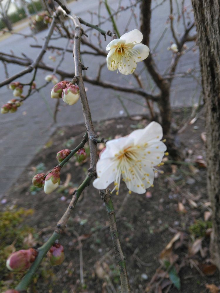 *白の梅の花が咲いていて😚いい匂い。