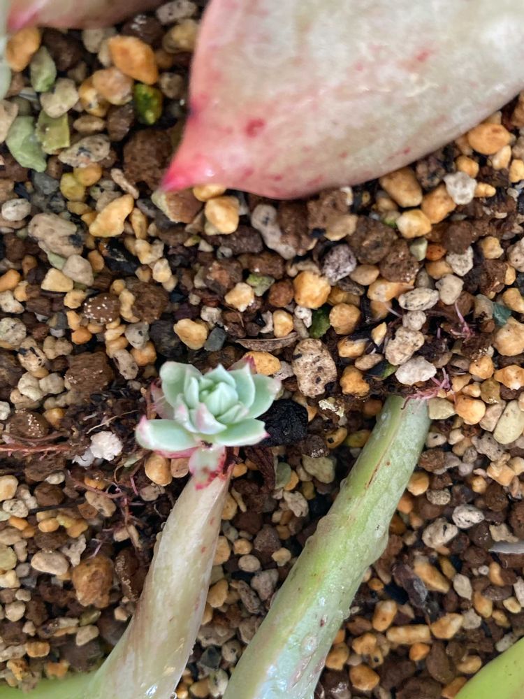透明な食品トレイに葉を並べていたら芽が出てきました✨