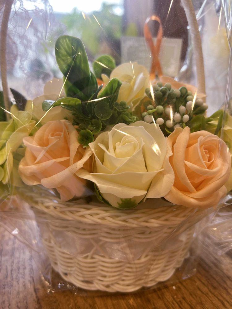 優しいバラ🌹のお花🤍🧡💛のアレンジでお祝いします🥂