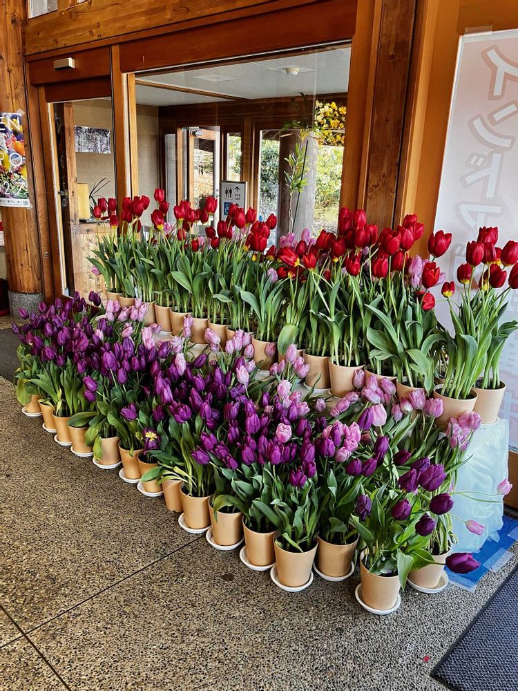 特別な親類ではなく、普通のチューリップの球根を冷蔵施設で一定期間 低温管理した後に自然環境に戻して「春がきた」と勘違いさせてまだ寒い冬の間に開花させたものだそうです♪