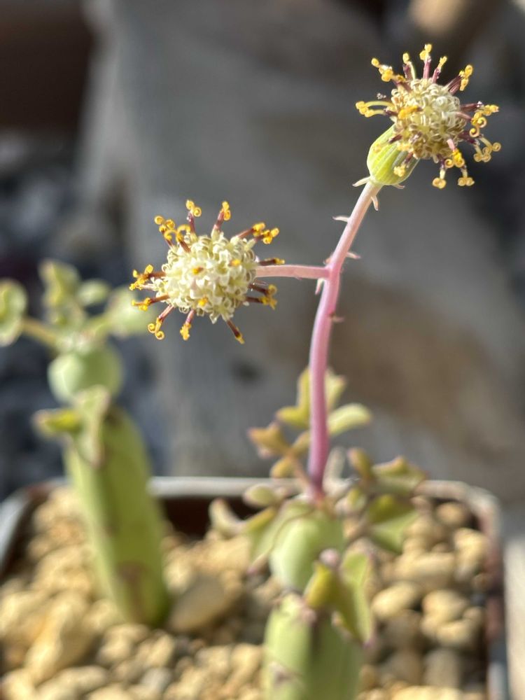 今日はお天気良くて七宝樹も少しだけ日向ぼっこ!いつのまにかこんなに伸びてこれ、花咲いた後かな🤔