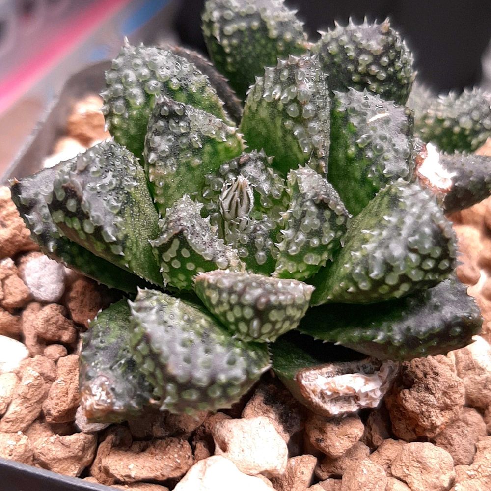 美容院行く度に多肉植物が2種類ずつ増える😂 この子はハオルチア属ルリデン(瑠璃殿)さんらしい…。日焼けしてカサカサなのでよく分からないが、蕾がついているという驚き😱 植物名:瑠璃殿 学名 :Hawworthia limifolia 英名 :Fairy washboard 科名 :ユリ科 属名 :ハオルシア属 原産地:南アフリカケープ州 別名 : リミフォリア、妖精の洗濯板 生育型: 春秋型