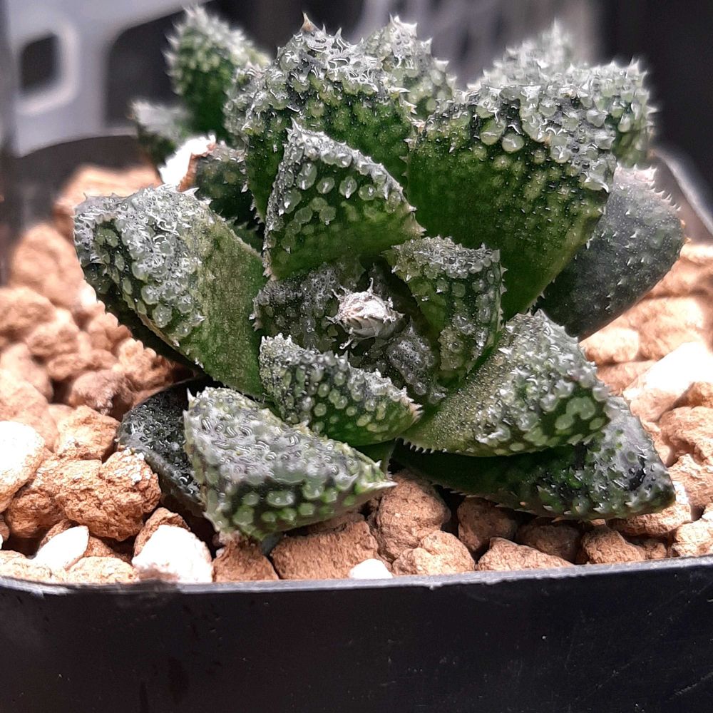 コーデックス師匠と仰ぐGS 友さんへパキプス君をお届けがてら、1年ぶりの二和園へ🚗💨 師匠のお友達と4人でハウスの中を行ったり来たり⇄ 植欲増進中の私は購入🈲️ルールなんて無視💦 ずっと気になっていた子たちをGETしてきました😊 植物名: 瑠璃殿錦 学名 :Hawworthia limifolia f.variegata 英名 :Fairy Washboard 科名 :ユリ科 属名 :ハオルチア属 原産地: 南アフリカケープ州 流通名: 瑠璃殿錦 生育型: 春秋型