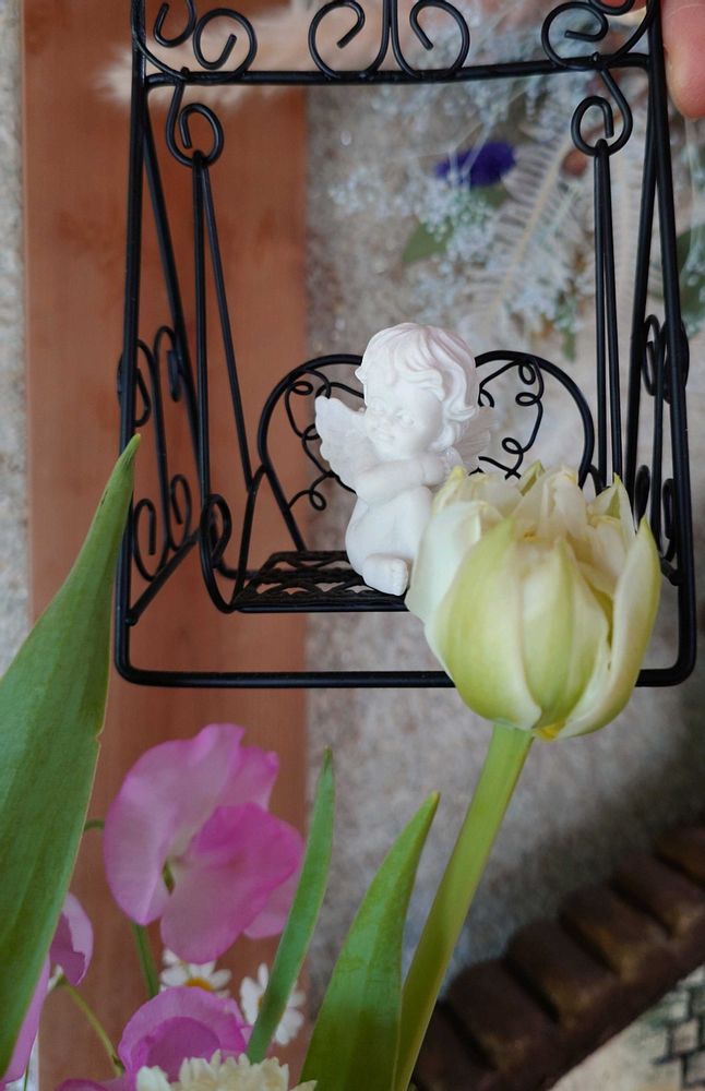 可愛いエンジェルちゃんが、チューリップ🌷を見守っているんですね~🤗