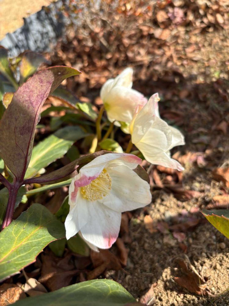 クリスマスローズ、この白にちょっとだけピンクのこの子が1番に咲くんだよ〜地植えだから手もかからないしね。
