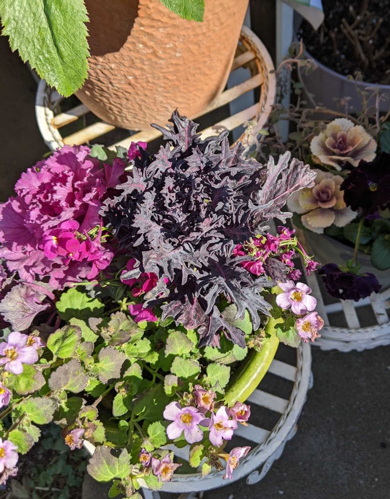 ④⑤最近、強風ですが日差しと昼間の気温が暖かくて寄せ植えたちも元気です。