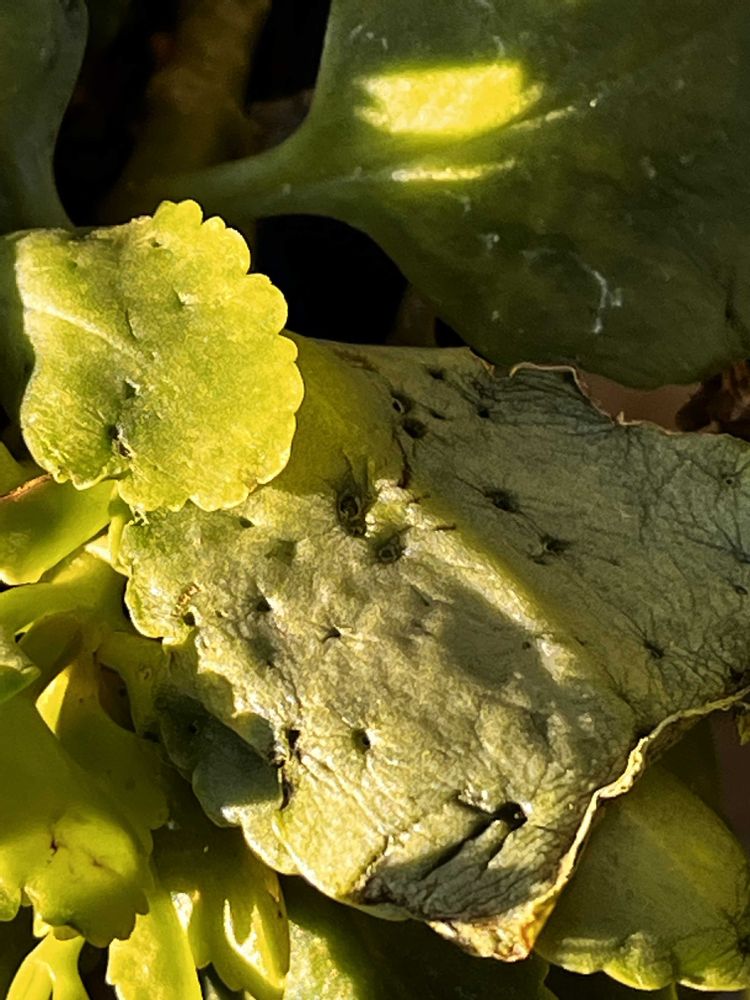 畑のブロッコリーやカリフラワーの葉っぱは、良く食べられてます!