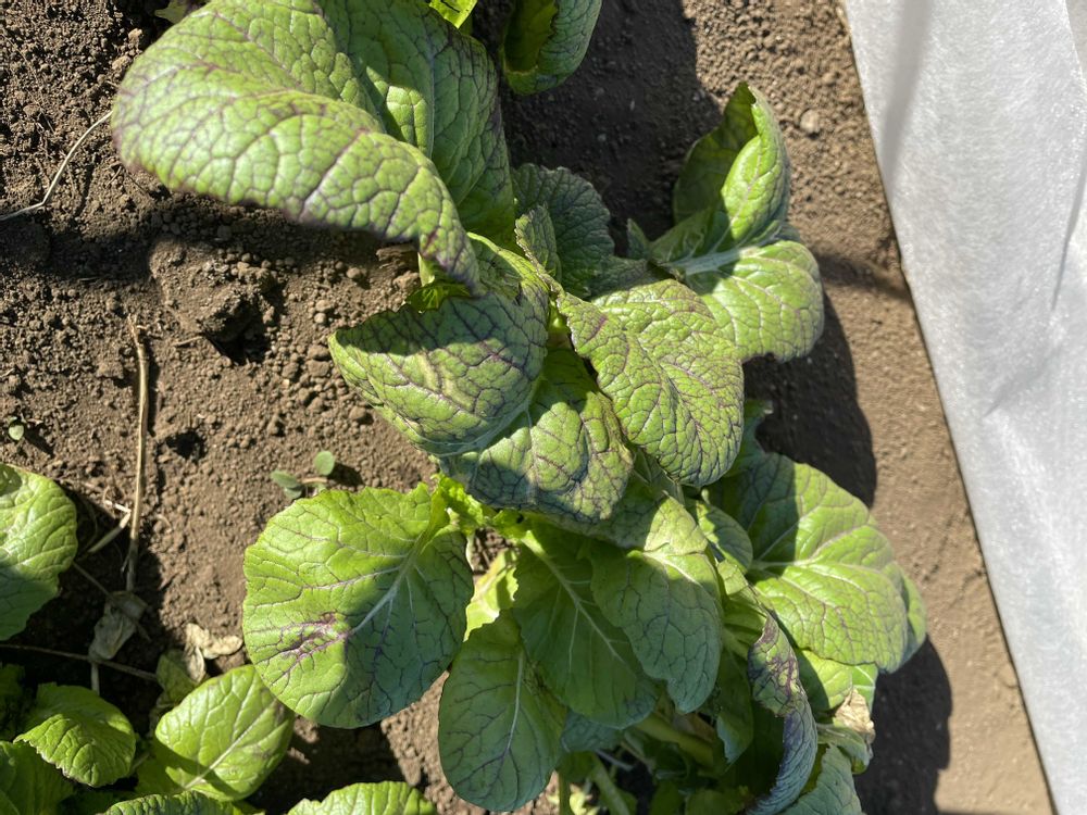 高菜の葉脈が赤くて綺麗だった❣️しかし種を蒔くのが少し遅かったせいか成長が少し遅いのかな?!…