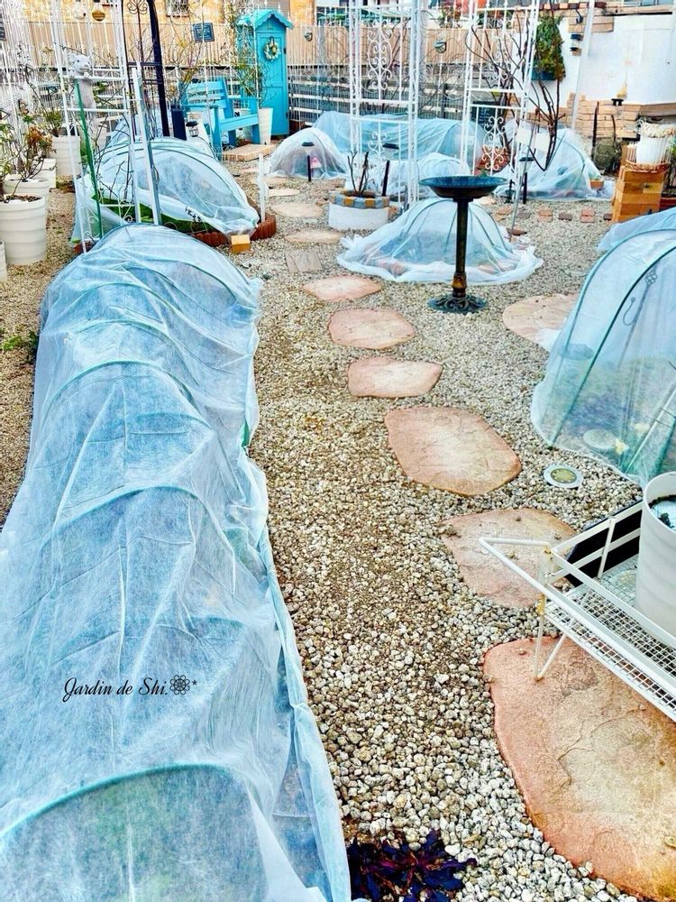 ⑤4日に不織布を掛け終わり庭が白いかまくら状態です🤭
