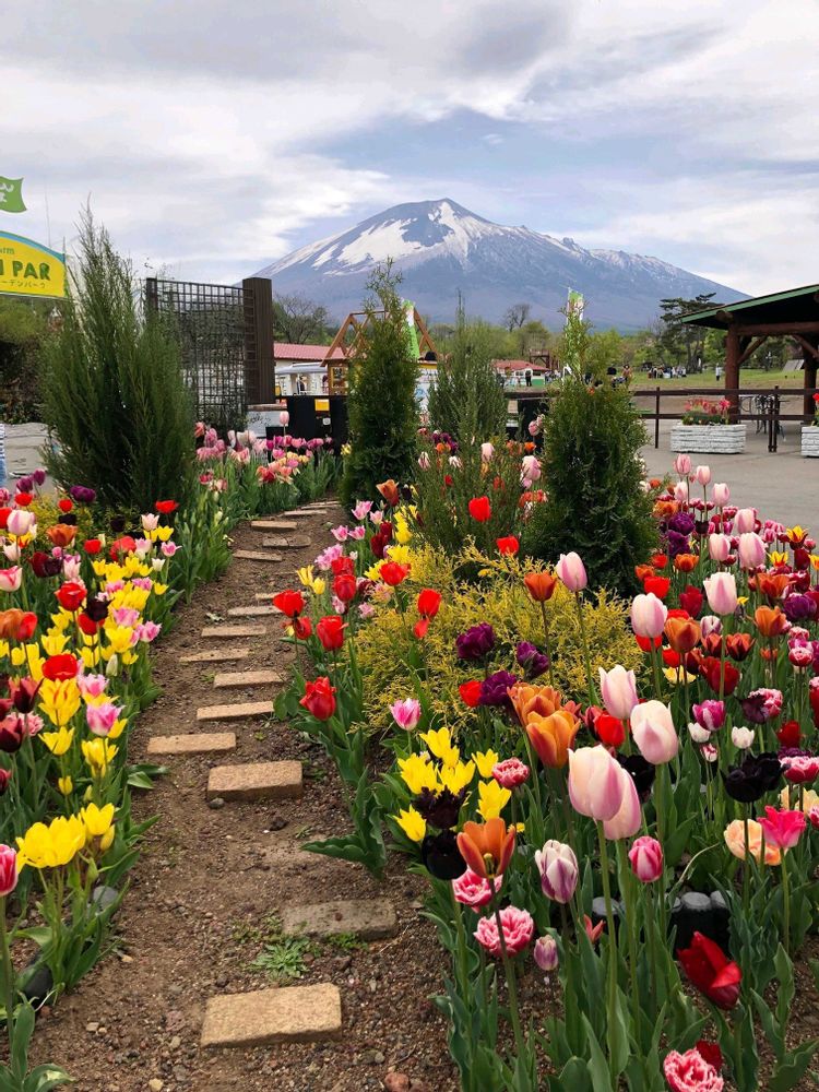 3️⃣岩手山🏔️と🌷🌷🌷