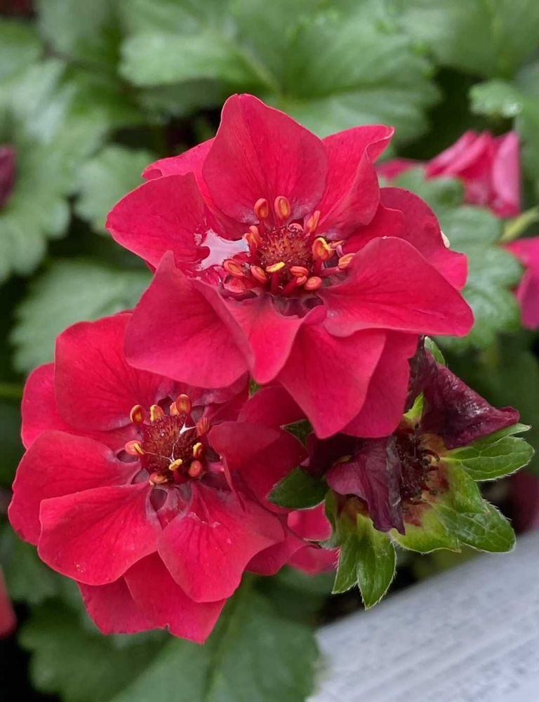 これがイチゴのお花なんだ😳と驚いた、サントリーフラワーズのローズベリーレッド❤️