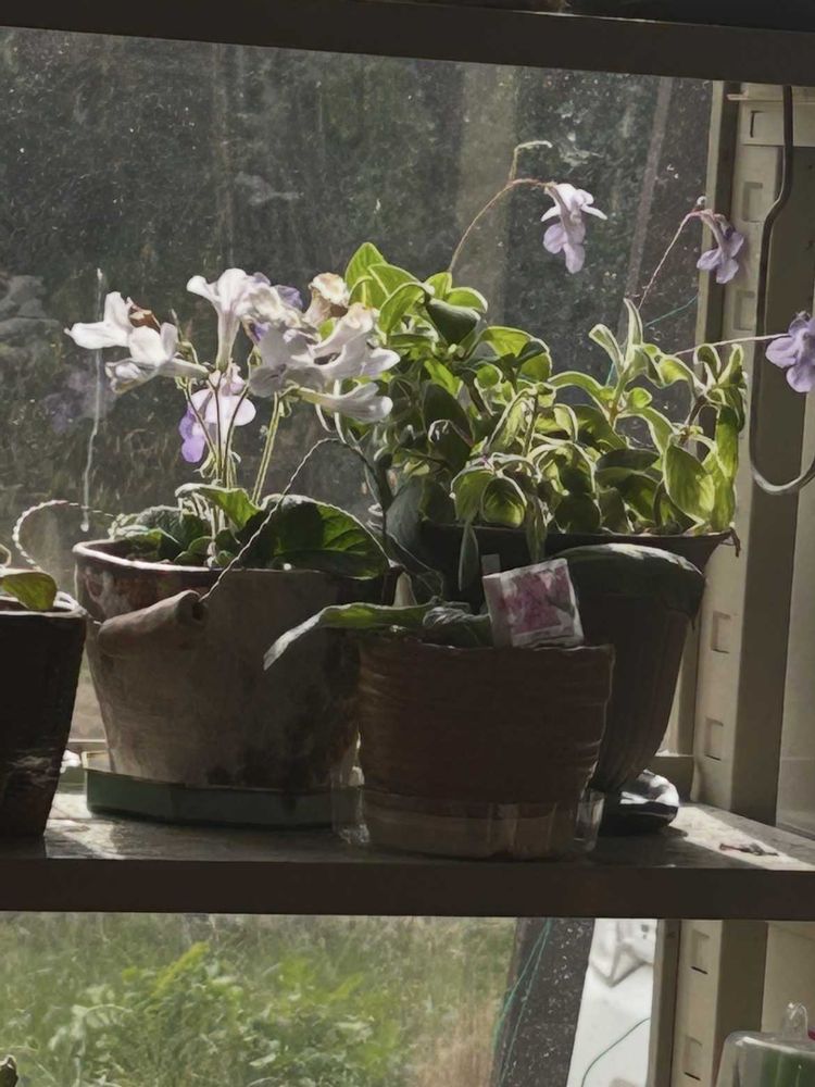旦那様先日の突風で剥がれた屋根波板の修理…私は自由…寄せ植え作ってました。今からおやつでも作りましょうか…