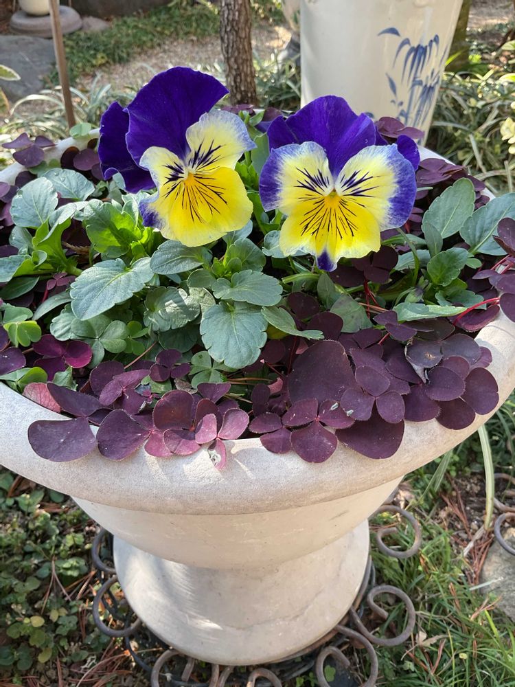 パンジーとオキザリス💐ナイス寄せ植え良いですね👍